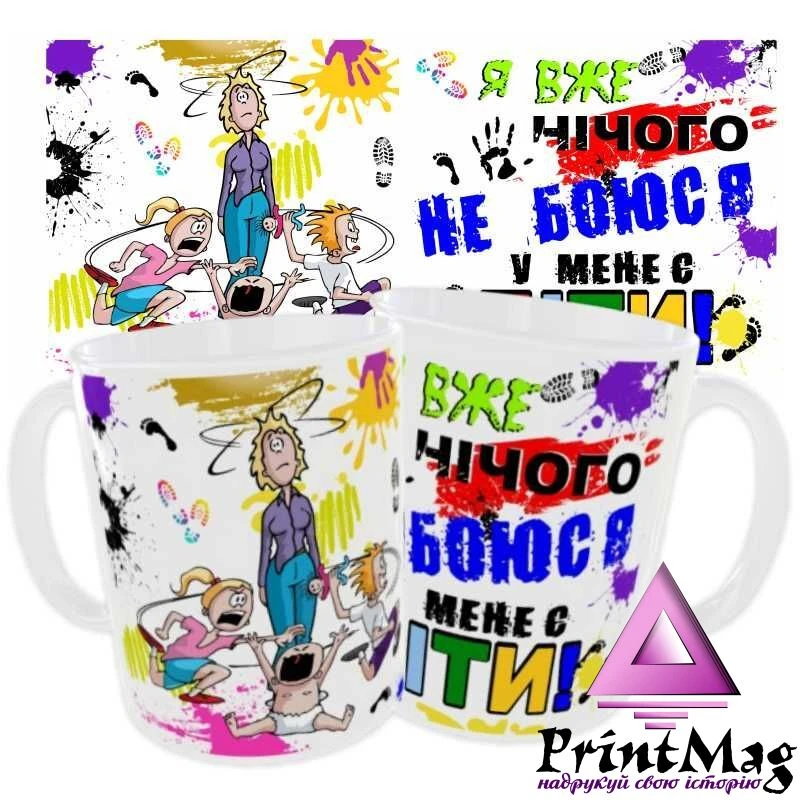 Чашка з принтом «Я вже нічого не боюся у мене є діти». Чашка з оригінальним принтом - чудовий подарунок до будь-якого свята або просто так.