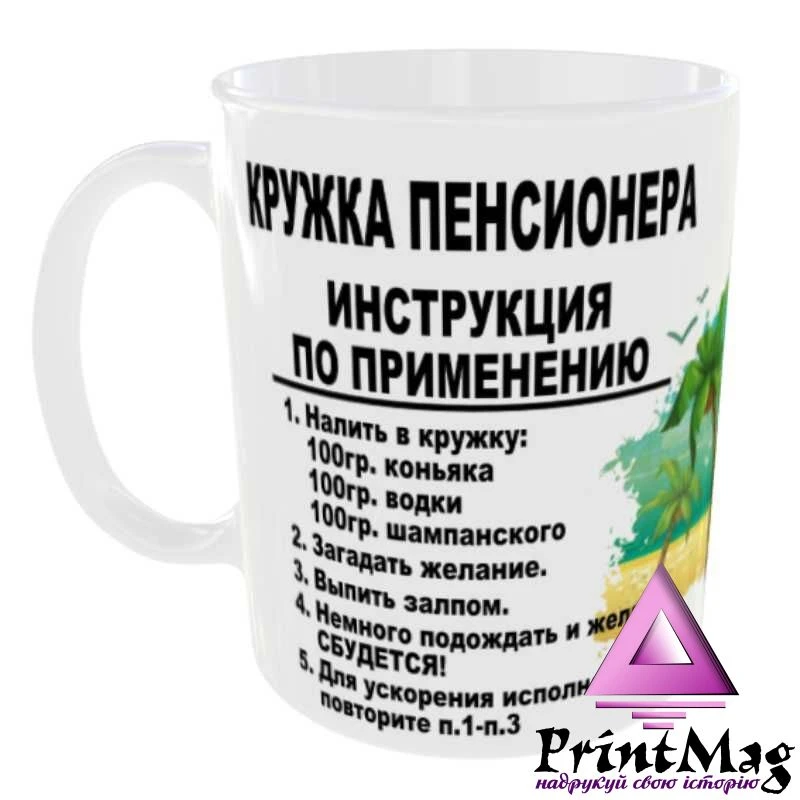 Чашка “Чашка пенсіонера. Інструкція із застосування”. Принт з обох боків.