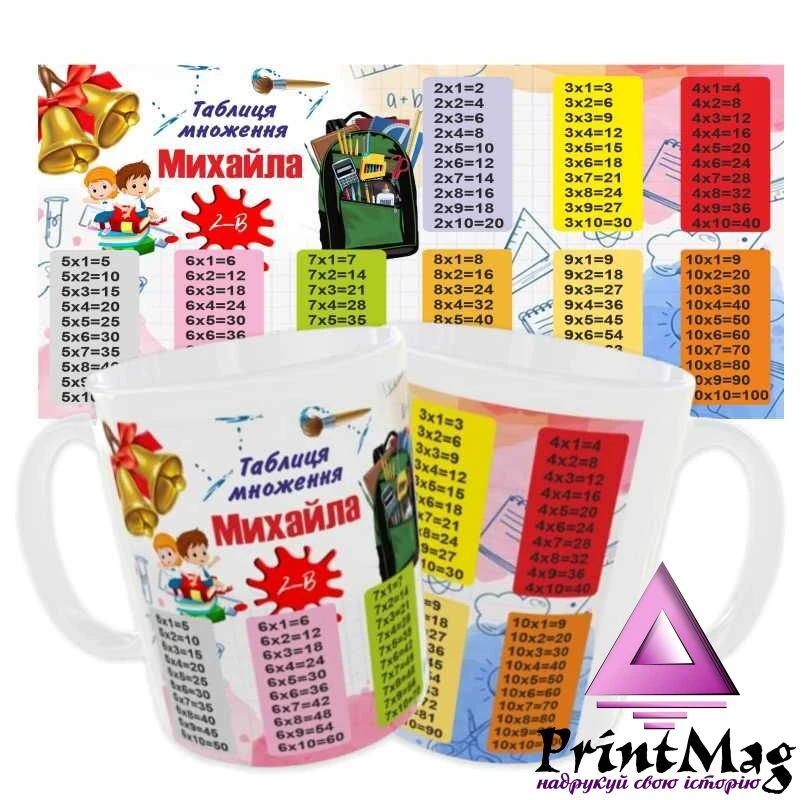 Чашка “Табличка множення з іменем” – можна пити чай та вчити табличку множення граючись. Саме так розвивається зорова пам’ять.