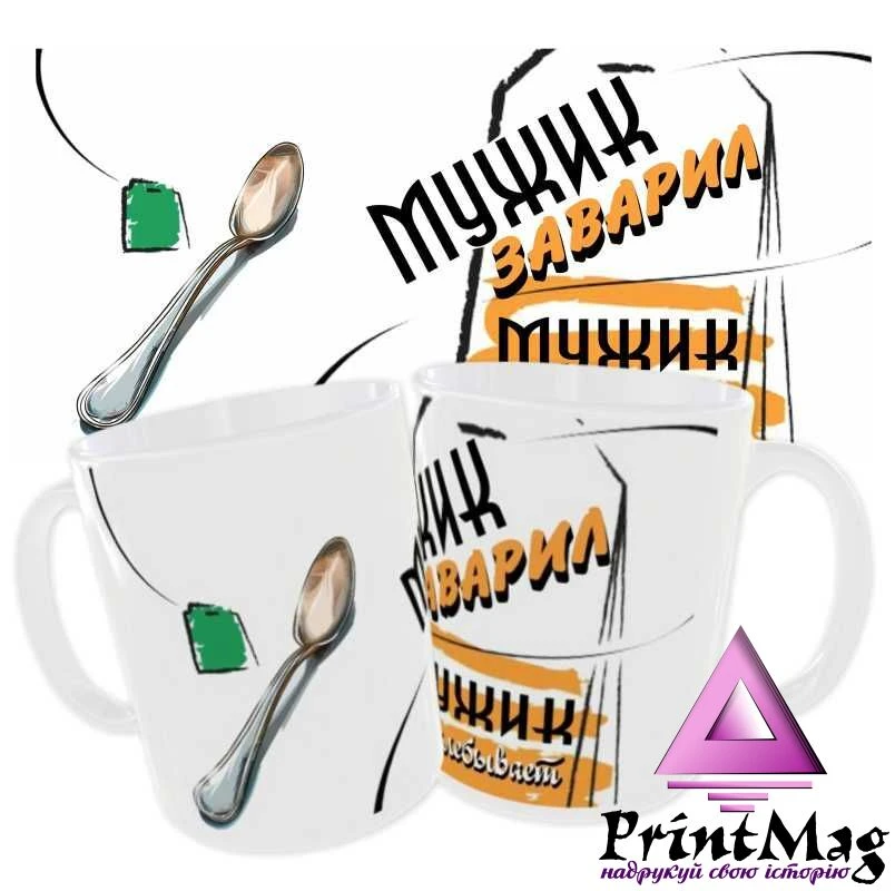 Чашка “Чоловік заварив чоловік розхльобує”. Чашка з оригінальним принтом - чудовий подарунок до будь-якого свята або просто так.