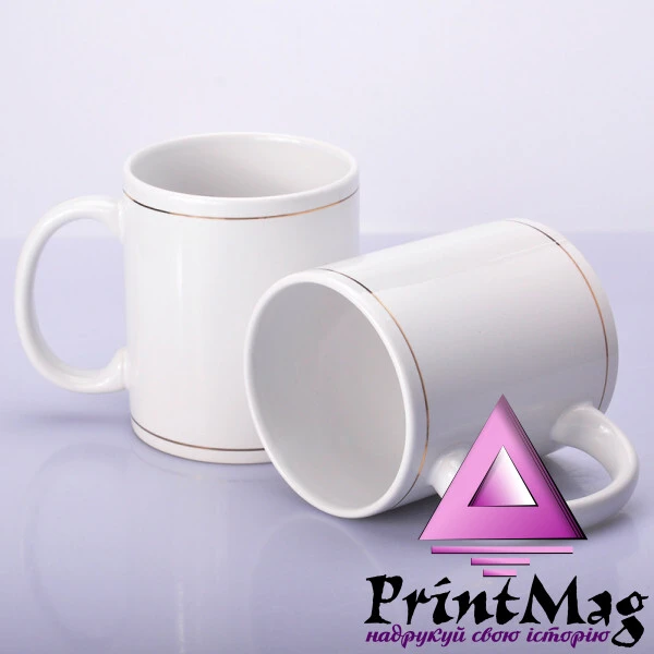Класична керамічна біла чашка із золотими обідками вгорі, внизу та на ручці, найвища якість кераміки.