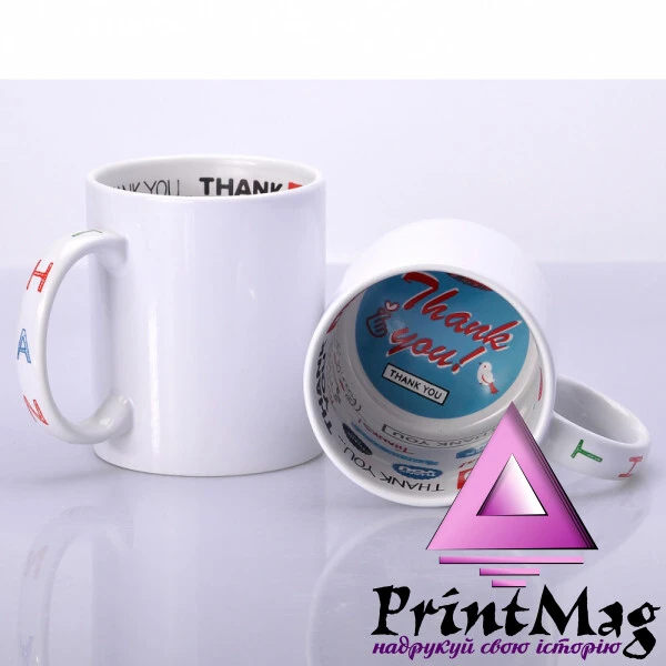 Керамічна біла чашка для сублімації Преміум класу з малюнком усередині Thank You.