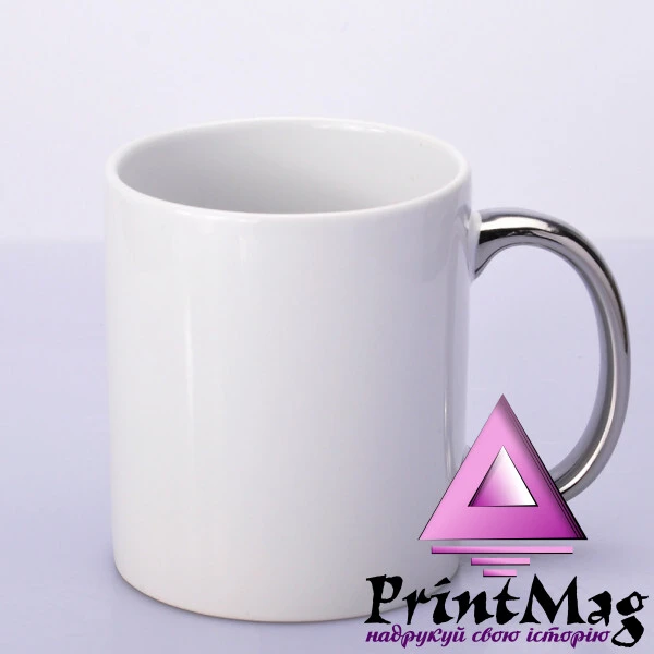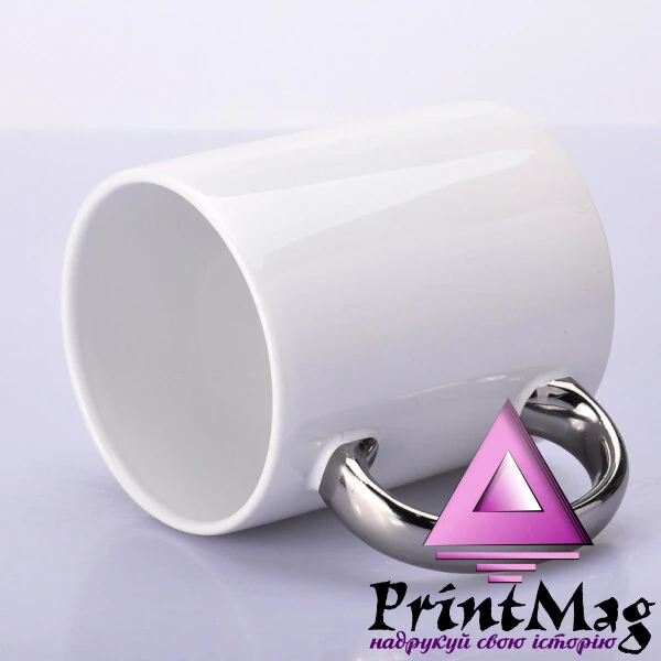 Класична керамічна біла чашка із срібною ручкою, найвища якість кераміки.