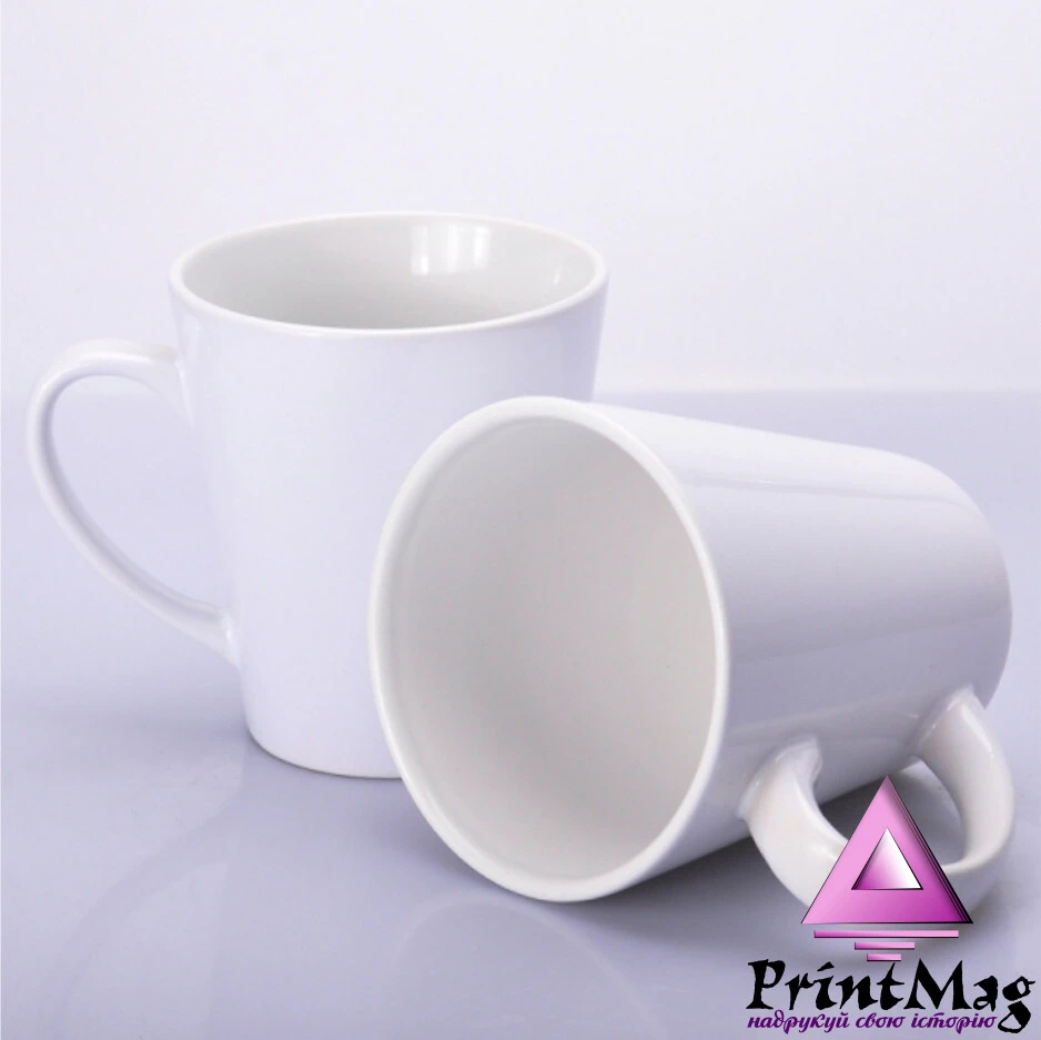 Біла керамічна чашка для сублімації конусної форми.