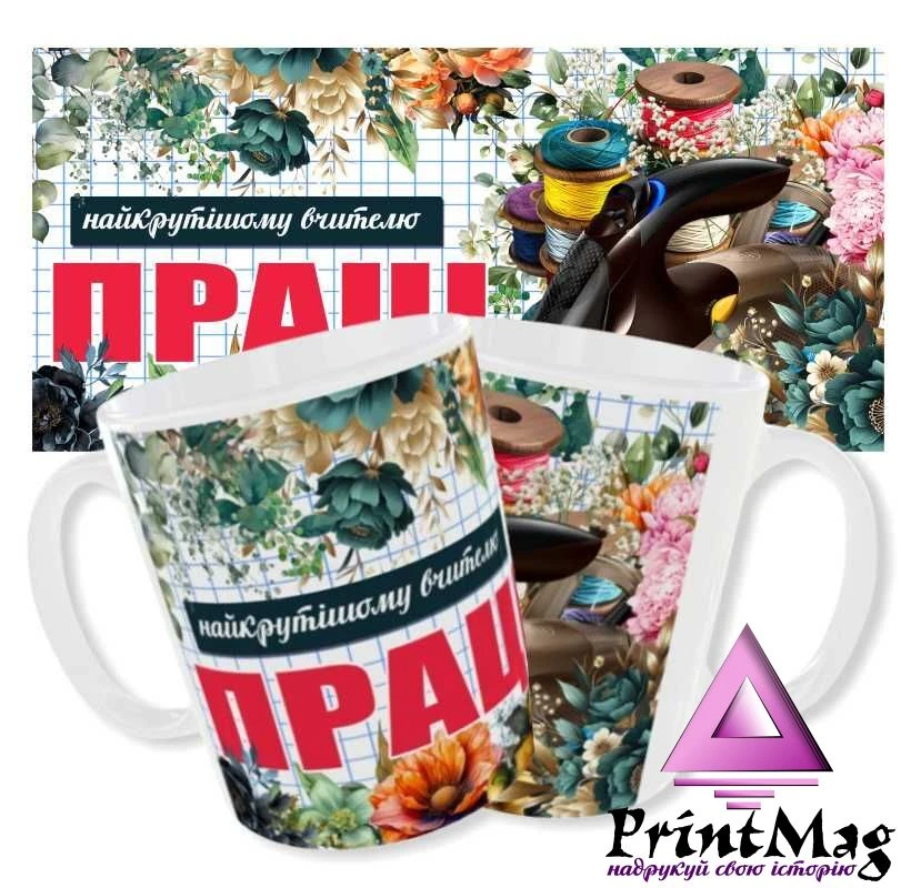 Чашка на подарунок з написом «Найкрутішому вчителю праці». Для Вчителя.