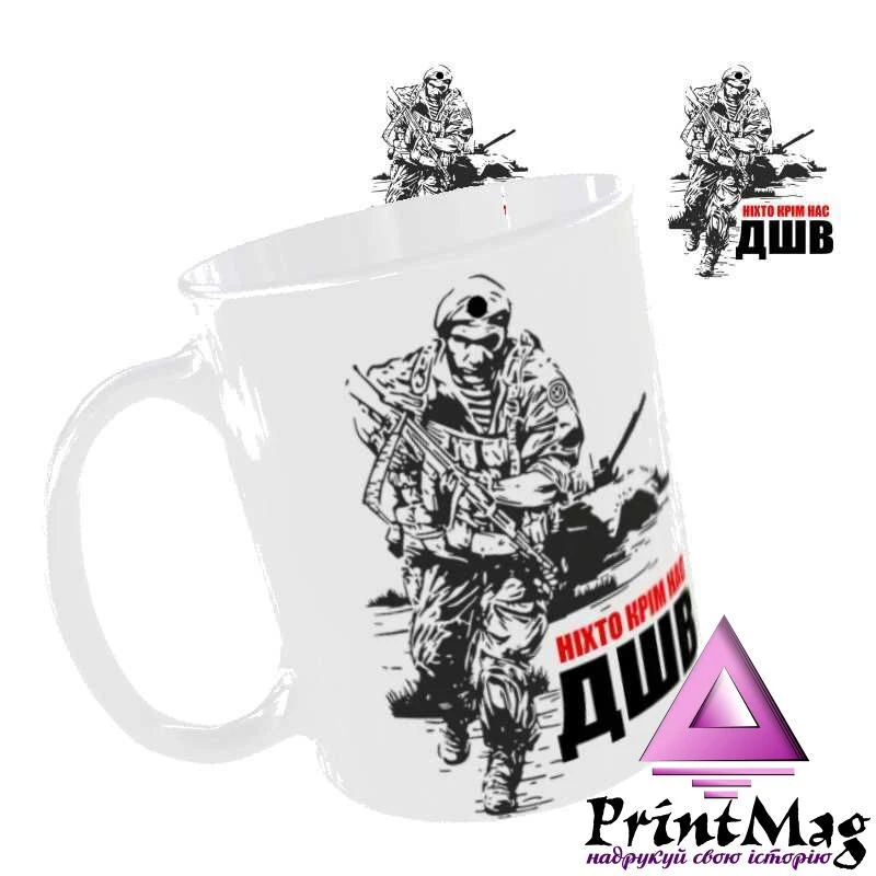 Чашка «ДШВ. Ніхто крім нас». Принт з двух сторін. Наша країна славиться своїми сильними та сміливими чоловіками.
