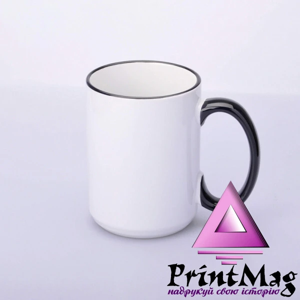 Чашка для сублімації керамічна біла велика Преміум класу з кольоровим обідком та кольоровою ручкою. Чашка покрита сублімаційним лаком, який забезпечує ідеальне нанесення картинки за допомогою друку сублімації.