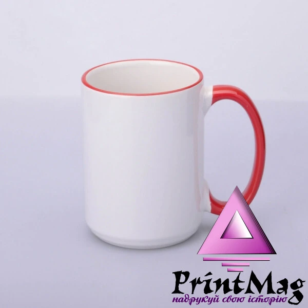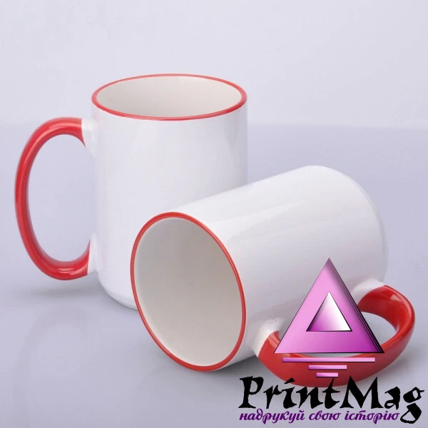 Чашка для сублімації керамічна біла велика Преміум класу з кольоровим обідком та кольоровою ручкою. Чашка покрита сублімаційним лаком, який забезпечує ідеальне нанесення картинки за допомогою друку сублімації.