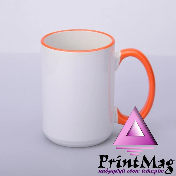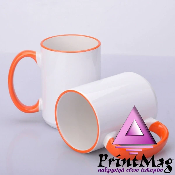 Чашка для сублімації керамічна біла велика Преміум класу з кольоровим обідком та кольоровою ручкою. Чашка покрита сублімаційним лаком, який забезпечує ідеальне нанесення картинки за допомогою друку сублімації.