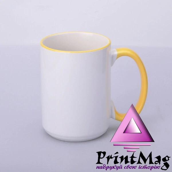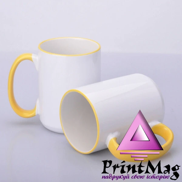 Чашка для сублімації керамічна біла велика Преміум класу з кольоровим обідком та кольоровою ручкою. Чашка покрита сублімаційним лаком, який забезпечує ідеальне нанесення картинки за допомогою друку сублімації.