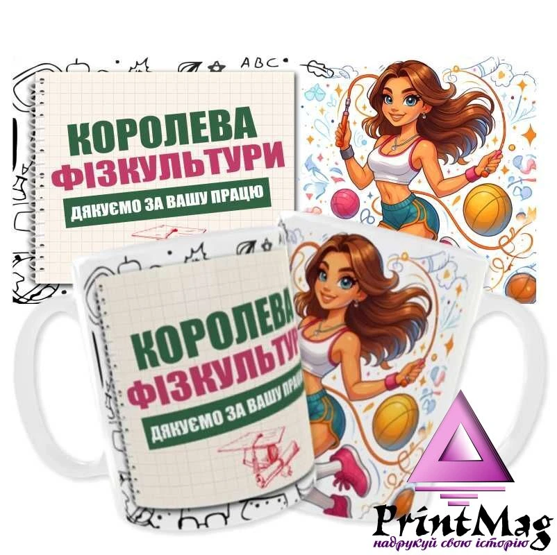 Чашка «Королева фізкультури. Дякуємо за Вашу працю». Для вчителя.