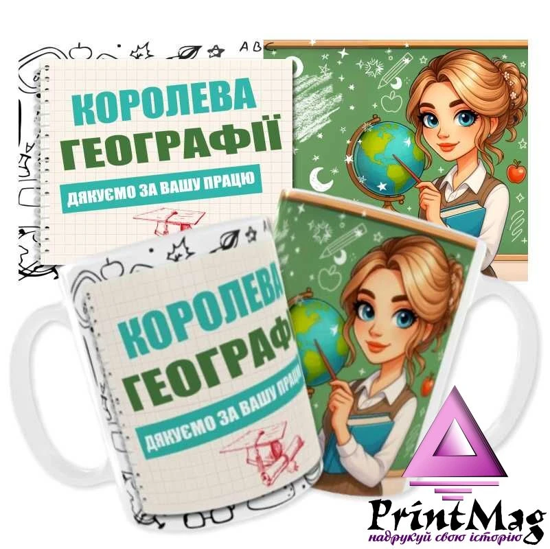 Чашка «Королева географії. Дякуємо за Вашу працю». Для вчителя.