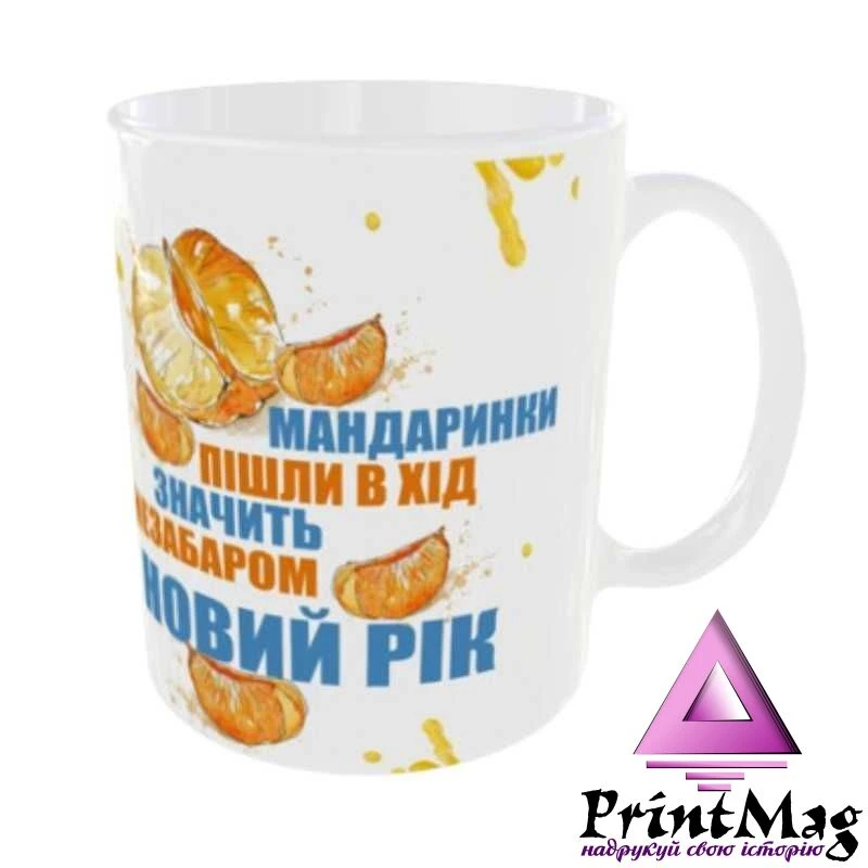 Чашка з новорічним принтом «Мандаринки пішли в хід, значить скоро новий рік»
