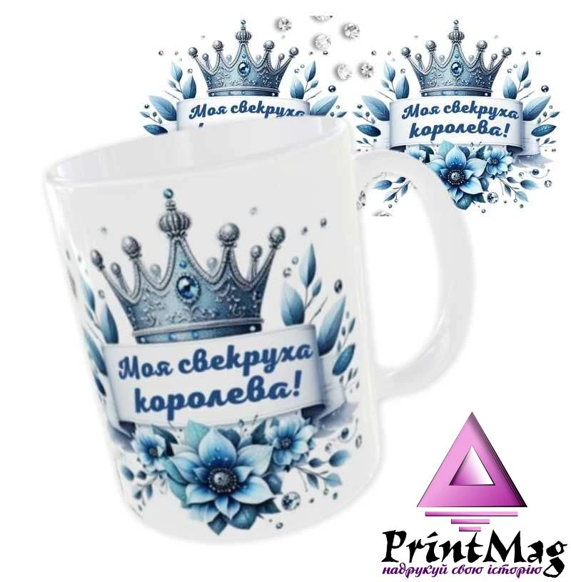 Чашка з принтом «Моя свекруха королева» - універсальний подарунок, до будь-якого свята або просто так. Друк на чашках вибирають ті, хто хоче зробити незвичайний, однозначно корисний подарунок, якому зрадіють рідні та друзі, колеги, і навіть корпоративні клієнти. Хочете здивувати близьку людину? Замовте оригінальний або пам'ятний напис, картинку, а краще надрукуйте фото на кружці того, кому призначений сюрприз.