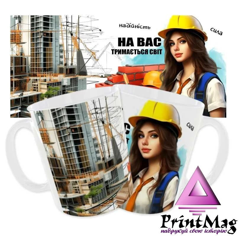 Чашка «На Вас тримається світ». Принт з обох боків.