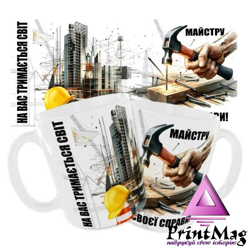 Чашка «На Вас тримається світ. Майстру своєї справи». Чашка для будівельника. Принт з обох боків.