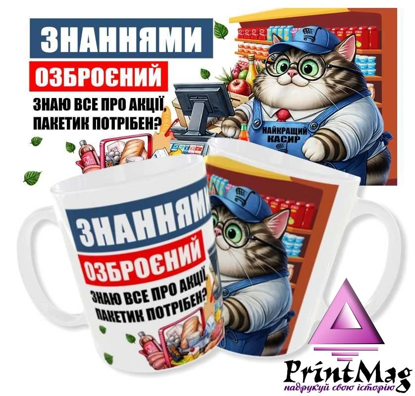 Жартівлива чашка на подарунок з написом «Найкращий касир». Прекрасний подарунок до будь-якого свята або просто так.