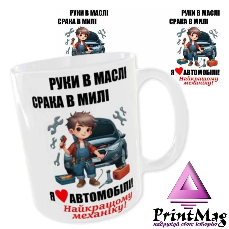 Чашка Найкращому механіку "Руки в маслі, срака в милі. Я люблю автомобілі"