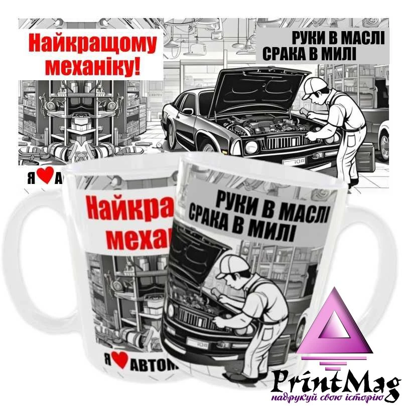 Чашка Найкращому механіку "Руки в маслі, срака в милі. Я люблю автомобілі"