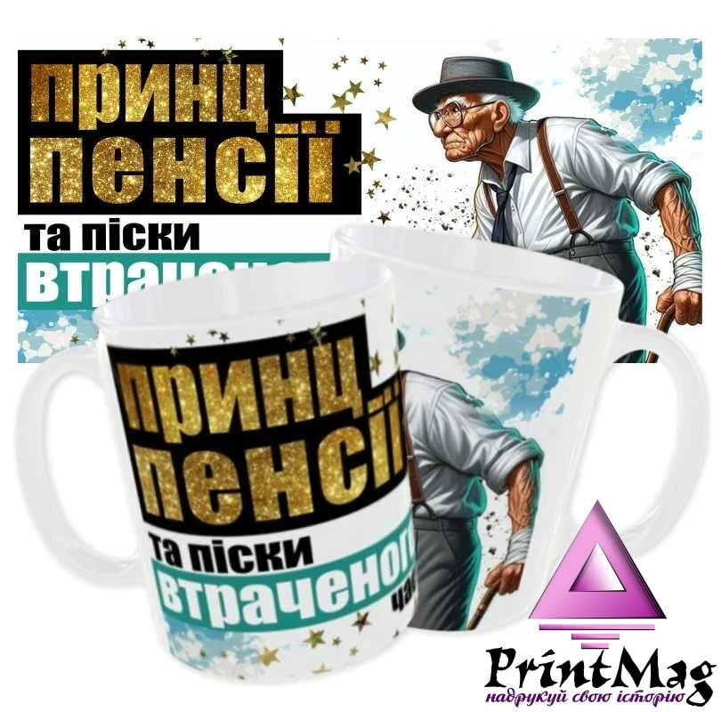 Чашка з принтом «Принц пенсії та піски втраченого часу». Хочете порадувати близьку людину? Чашка стане чудовим подарунком, який буде заряджати гарним настроєм з самого ранку! Чашка з принтом може нагадувати про важливих людей і події, або ж важливі справи.