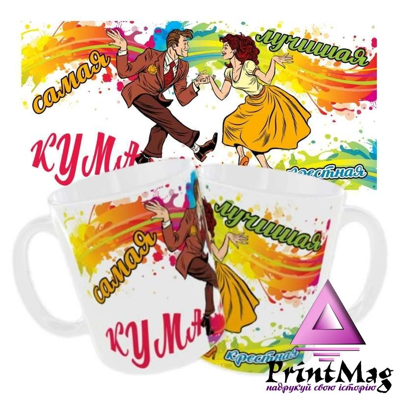 Чашка «Сама найкраща кума і хрещена». Кружки з принтом вибирають ті, хто хоче зробити незвичайний, однозначно корисний подарунок, якому зрадіють рідні та друзі, колеги, і навіть корпоративні клієнти. Хочете здивувати близьку людину? Замовте чашку з оригінальним і пам'ятним написом або картинкою. Раді співпраці зі школами та дитячими садами! Якщо цікавить ОПТ – ТЕЛЕФОНУЙТЕ.