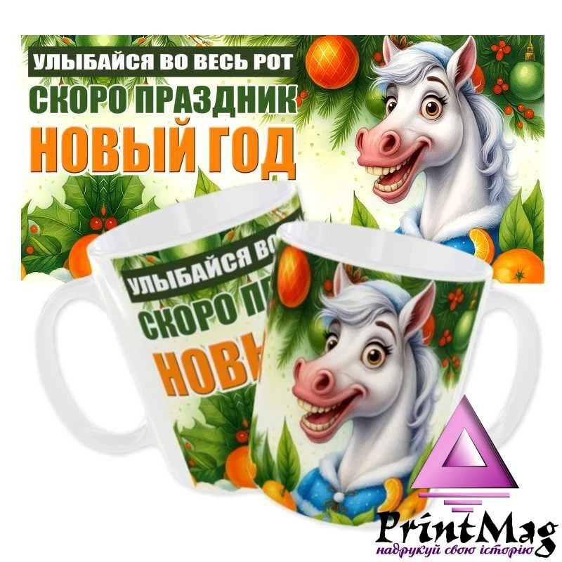Чашка з принтом " «Скоро свято новий рік». Вогняний Кінь" - універсальний подарунок, до будь-якого свята або просто так. Друк на чашках вибирають ті, хто хоче зробити незвичайний, однозначно корисний подарунок, якому зрадіють рідні та друзі, колеги, і навіть корпоративні клієнти. Хочете здивувати близьку людину? Замовте оригінальний або пам'ятний напис, картинку, а краще надрукуйте фото на кружці того, кому призначений сюрприз.