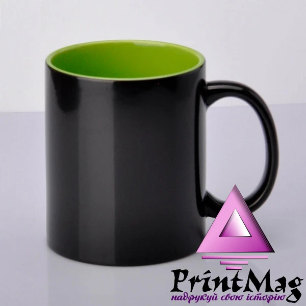 Чашка для сублімації керамічна зі спеціальним покриттям хамелеон, яке при нагріванні стає прозорим і нанесене зображення проявляється.