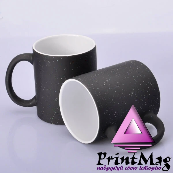 Чашка для сублімації керамічна з спеціальним покриттям хамелеон, при нагріванні кристали емалевого покриття стають прозорими, і нанесене зображення проявляється. Чашка покрита сублімаційним лаком, який забезпечує ідеальне нанесення картинки за допомогою сублімації.