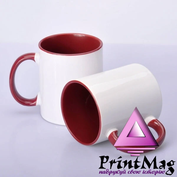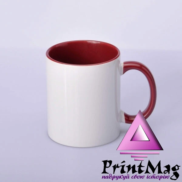 Чашка для сублімації керамічна біла Преміум класу з кольоровою ручкою та кольоровою всередині. Чашка покрита сублімаційним лаком, що забезпечує ідеальне нанесення картинки за допомогою сублімаційного друку.