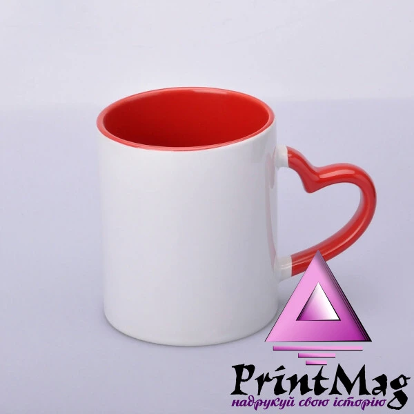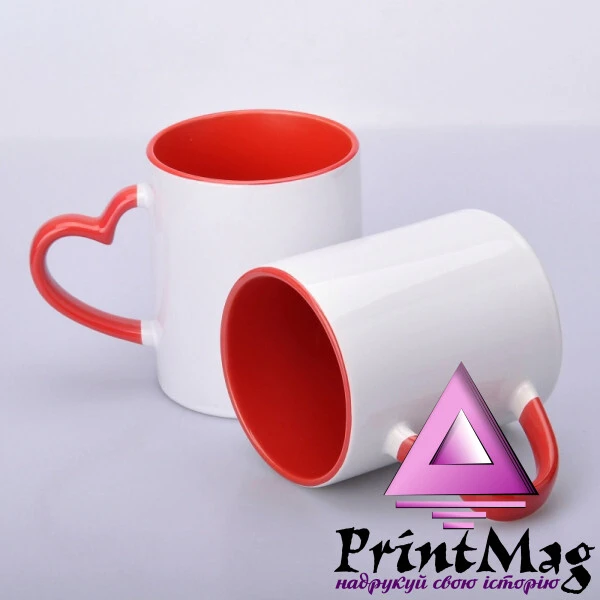 ЧАШКА СУБЛІМАЦІЙНА КОЛЬОРОВА ВСЕРЕДИНІ І РУЧКА LOVE ЧЕРВОНА