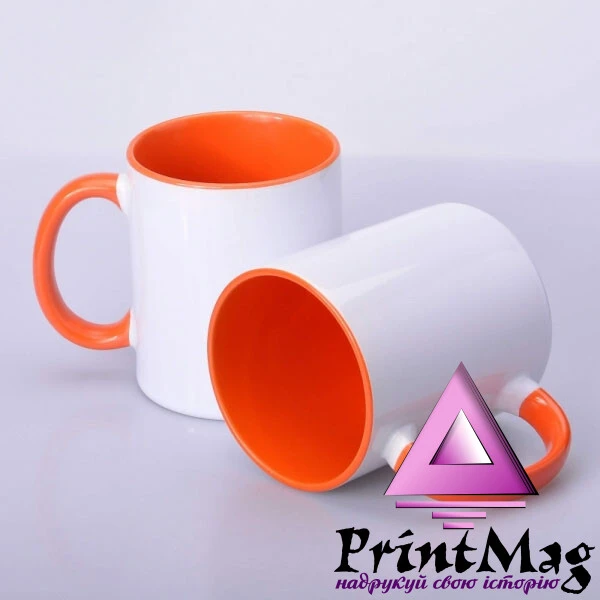 Чашка для сублімації керамічна біла Преміум класу з кольоровою ручкою та кольоровою всередині. Чашка покрита сублімаційним лаком, що забезпечує ідеальне нанесення картинки за допомогою сублімаційного друку.
