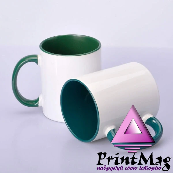 Чашка для сублімації керамічна біла Преміум класу з кольоровою ручкою та кольоровою всередині. Чашка покрита сублімаційним лаком, що забезпечує ідеальне нанесення картинки за допомогою сублімаційного друку.
