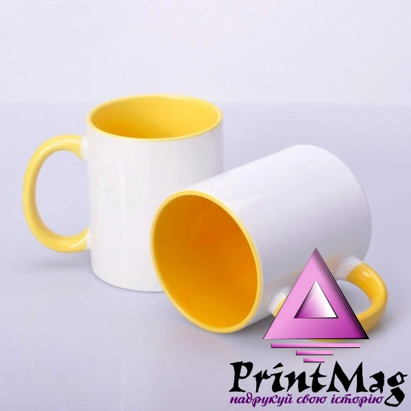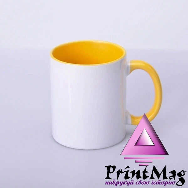 Чашка для сублімації керамічна біла Преміум класу з кольоровою ручкою та кольоровою всередині. Чашка покрита сублімаційним лаком, який забезпечує ідеальне нанесення картинки за допомогою друку сублімації.