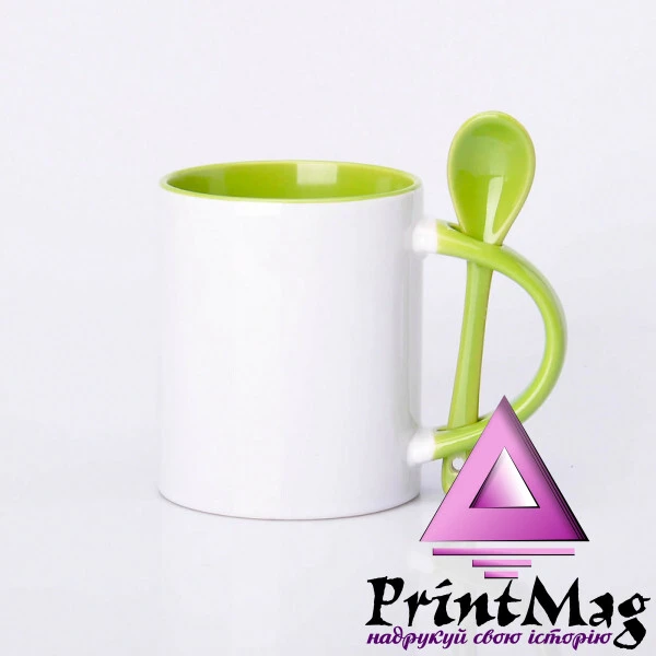 Чашка для сублімації керамічна біла Преміум класу всередині з ложкою. Чашка покрита сублімаційним лаком, що забезпечує ідеальне нанесення картинки за допомогою сублімаційного друку.