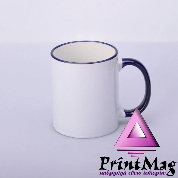 ЧАШКА СУБЛІМАЦІЙНА КОЛЬОРОВИЙ ОБІДОК І РУЧКА (КОБАЛЬТ)
