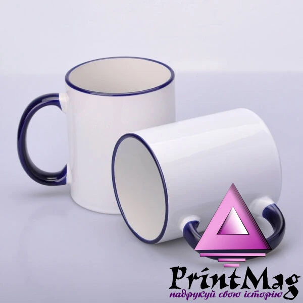 Чашка для сублімації керамічна біла Преміум класу з кольоровим обідком та кольоровою ручкою. Чашка покрита сублімаційним лаком, що забезпечує ідеальне нанесення картинки за допомогою сублімаційного друку.