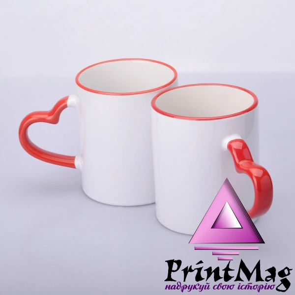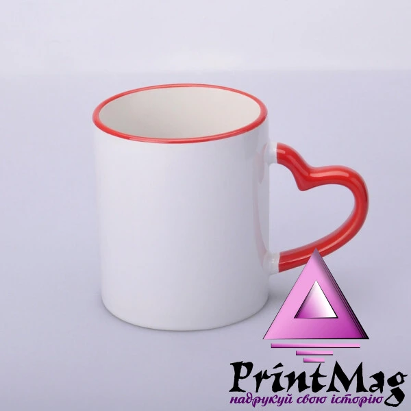 Чашка для сублімації керамічна біла Преміум класу з кольоровою ручкою та кольоровим обідком. Чашка покрита сублімаційним лаком, що забезпечує ідеальне нанесення картинки за допомогою сублімаційного друку.