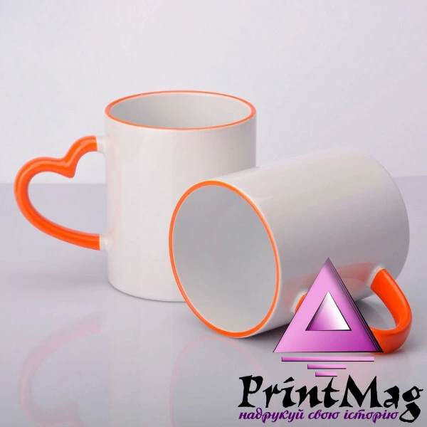 ЧАШКА СУБЛІМАЦІЙНА КОЛЬОРОВИЙ ОБІДОК І РУЧКА LOVE ПОМАРАНЧЕВИЙ