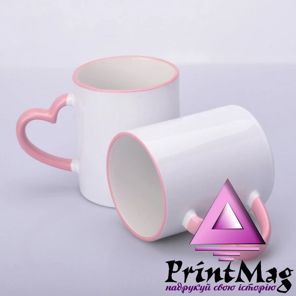 Чашка для сублімації керамічна біла Преміум класу з кольоровою ручкою та кольоровим обідком. Чашка покрита сублімаційним лаком, що забезпечує ідеальне нанесення картинки за допомогою сублімаційного друку.