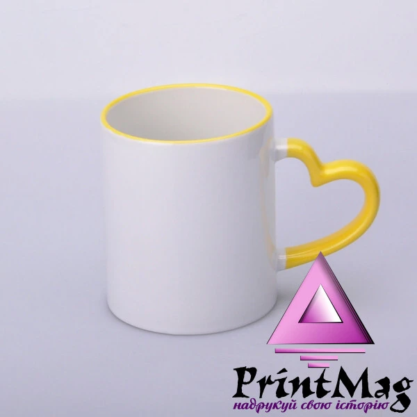 Чашка для сублімації керамічна біла Преміум класу з кольоровою ручкою та кольоровим обідком.