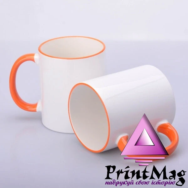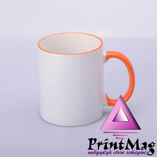 ЧАШКА СУБЛІМАЦІЙНА КОЛЬОРОВИЙ ОБІДОК І РУЧКА (ПОМАРАНЧОВА)