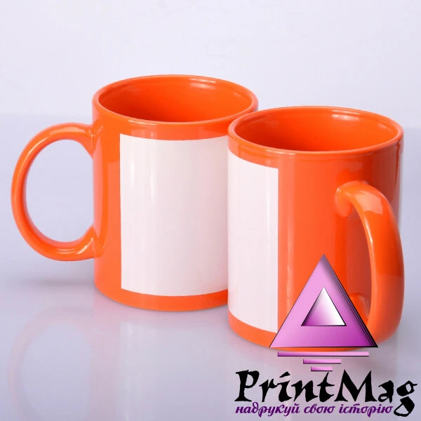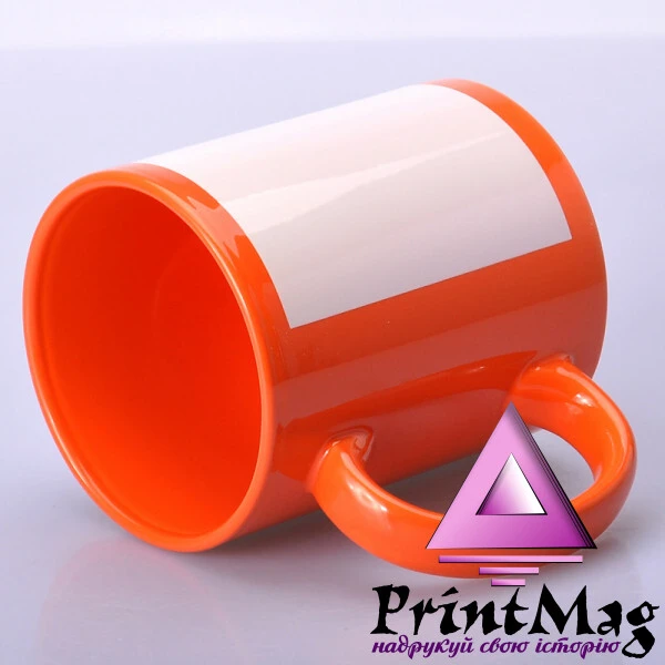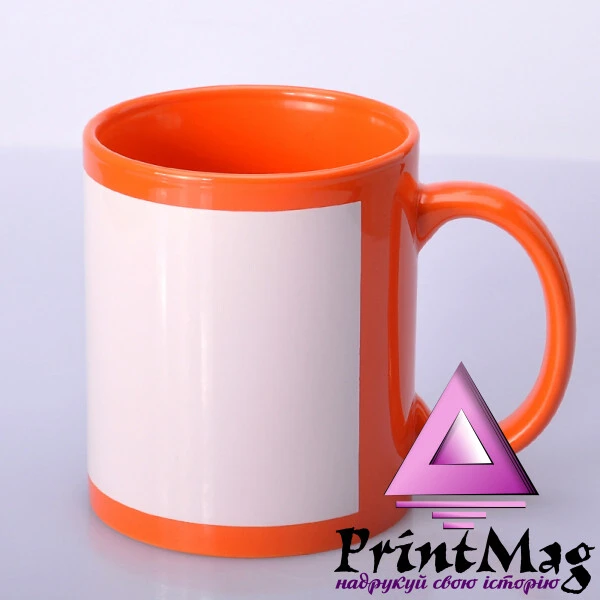 Кольорова (зовні та всередині) чашка з білим полем для друку – нанесення на цю область картинки методом сублімації.