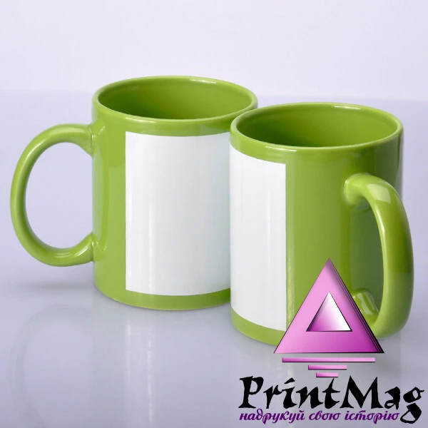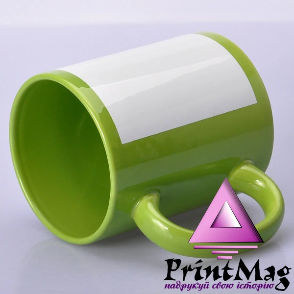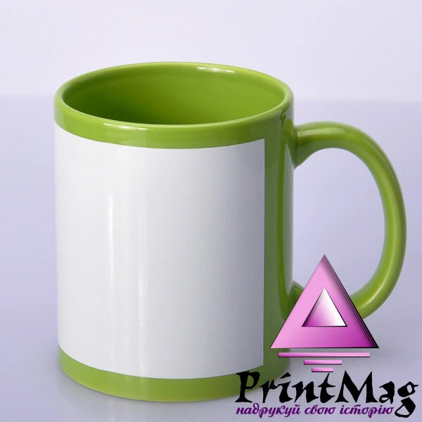 Кольорова (зовні та всередині) чашка з білим полем для друку – нанесення на цю область картинки методом сублімації.