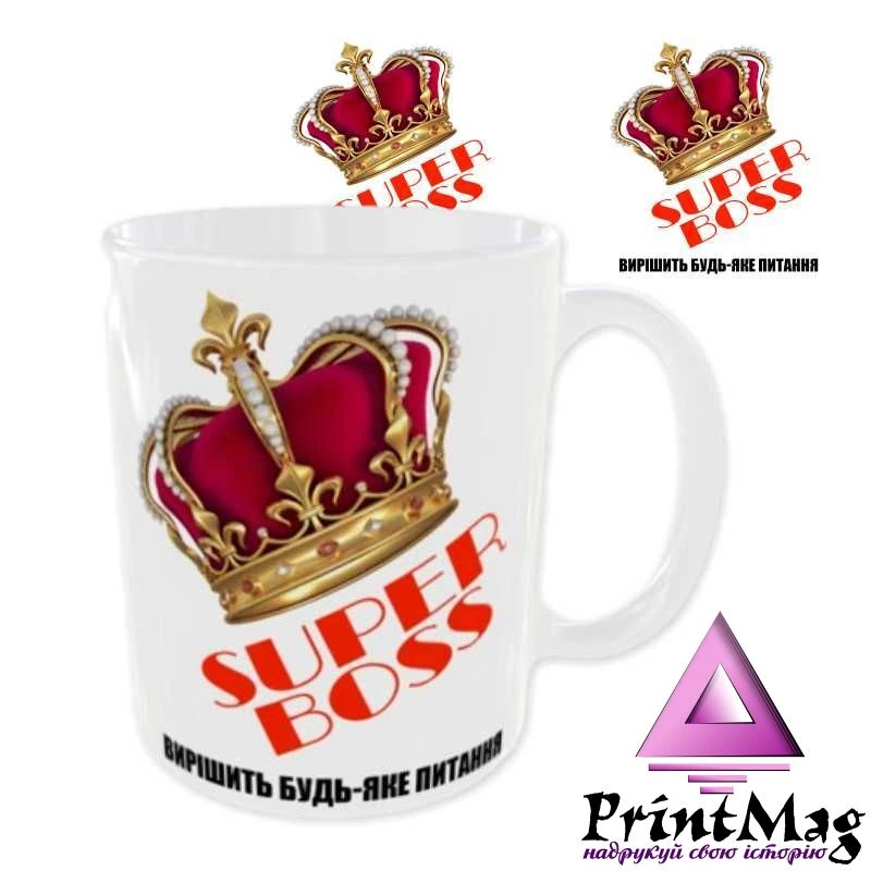 Чашка «Super Boss. Вирішить будь-яке питання». Принт з обох боків.