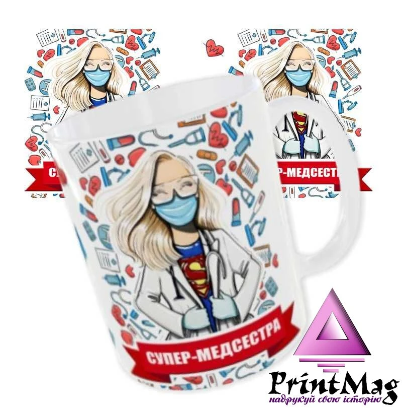 Чашка «Супер медсестра». Для медиків. Принт з обох боків.