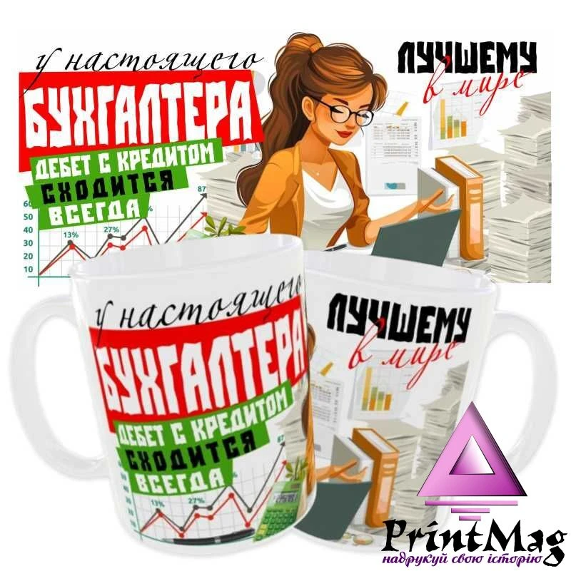 Чашка з принтом «У справжнього бухгалтера дебет з кредитом завжди збігається. Найкращому в світі.».