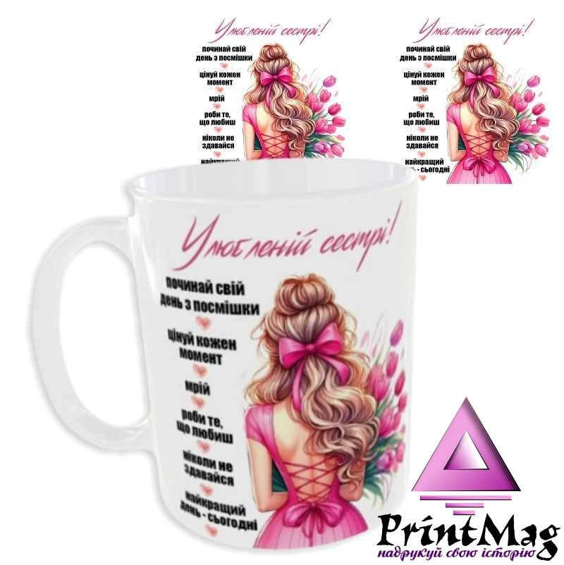 Чашка з написом «Улюбленій сестрі» - універсальний подарунок, до будь-якого свята або просто так.  Друк на чашках вибирають ті, хто хоче зробити незвичайний, однозначно корисний подарунок, якому зрадіють рідні та друзі, колеги, і навіть корпоративні клієнти. Хочете здивувати близьку людину? Замовте оригінальний або пам'ятний напис, картинку, а краще надрукуйте фото на кружці того, кому призначений сюрприз.