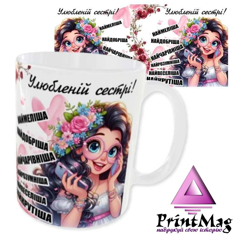 Чашка з написом «Улюбленій сестрі» - універсальний подарунок, до будь-якого свята або просто так.  Друк на чашках вибирають ті, хто хоче зробити незвичайний, однозначно корисний подарунок, якому зрадіють рідні та друзі, колеги, і навіть корпоративні клієнти. Хочете здивувати близьку людину? Замовте оригінальний або пам'ятний напис, картинку, а краще надрукуйте фото на кружці того, кому призначений сюрприз.