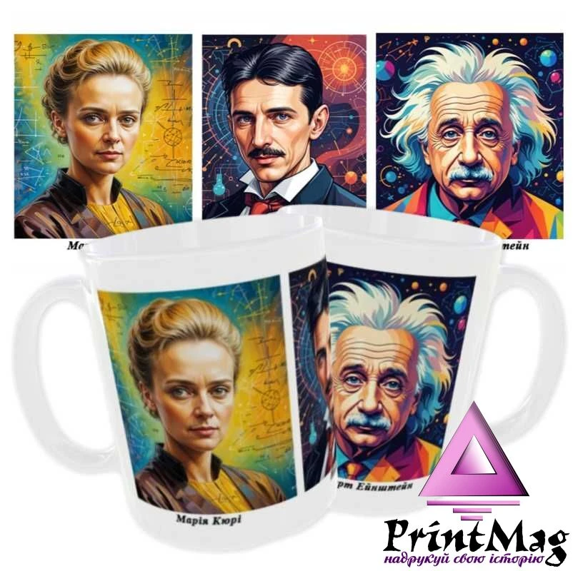 Чашка з принтом «Видатні вчені». Чашка з оригінальним принтом - чудовий подарунок для вчителя фізики. Чудовий подарунок до будь-якого свята або просто так.