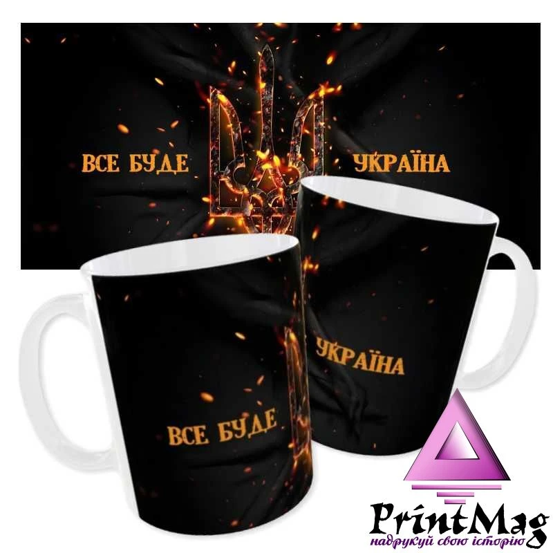 Чашка з принтом «Все буде Україна» - універсальний подарунок, до будь-якого свята або просто так.  Друк на чашках вибирають ті, хто хоче зробити незвичайний, однозначно корисний подарунок, якому зрадіють рідні та друзі, колеги, і навіть корпоративні клієнти. Хочете здивувати близьку людину? Замовте оригінальний або пам'ятний напис, картинку, а краще надрукуйте фото на кружці того, кому призначений сюрприз.